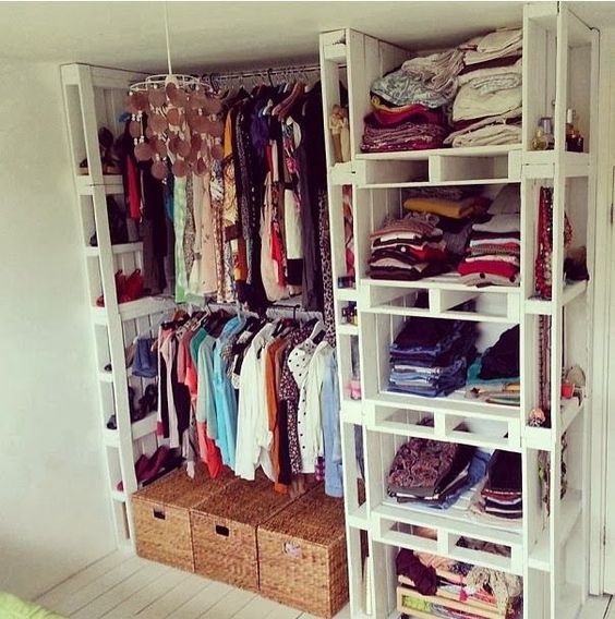 A decoração de quarto com reciclagem pode possuir também apenas itens recicláveis, como um armário feito inteiramente com paletes, por exemplo. Se quiser deixe as paletes sem pintura. Para organizar seus itens utilize caixas recicladas.