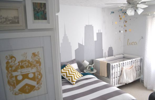 Até mesmo um quarto de adolescente pode receber muito bem um berço para o irmão bebê. Se possuir espaço, basta dividir o quarto em duas partes e deixar um lado para o adolescente, com seus pertences e enfeites de parede e objetos de decoração, e o outro lado para o bebê, podendo ter até mesmo uma cômoda que tem a função também de trocador.