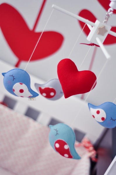 Para as mamães que gostam de fazer artesanatos vale decorar todo o quarto com peças artesanais, espalhando bichinhos e corações feitos de feltro ou de tecido por todo o quarto, em todos os cantinhos.