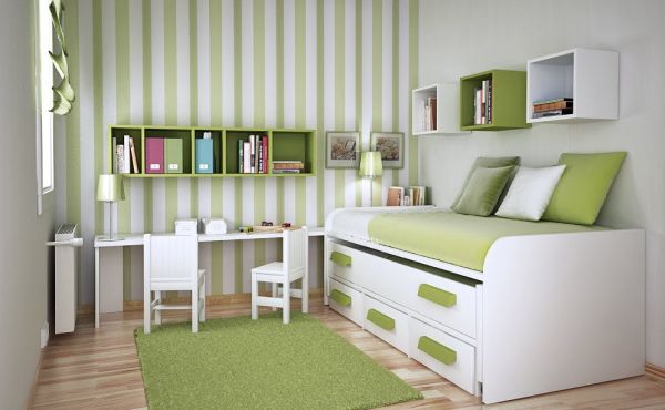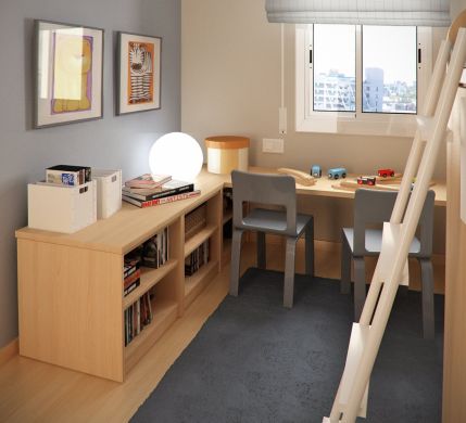 Para quem tem dois filhos, o uso de beliche é essencial ou então o uso de camas que sejam confeccionadas com uma cama sobressalente na parte debaixo, posicionada como se fosse uma gaveta da cama tradicional; a vantagem deste tipo de cama é a opção de maior espaço no quarto enquanto não se está dormindo.