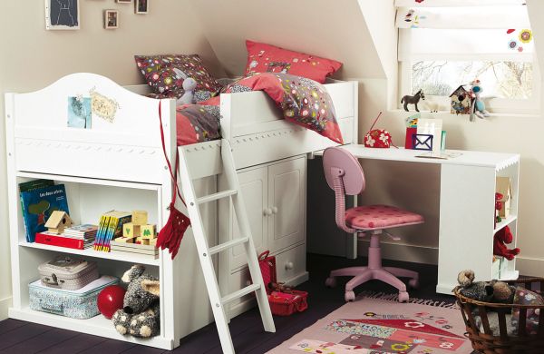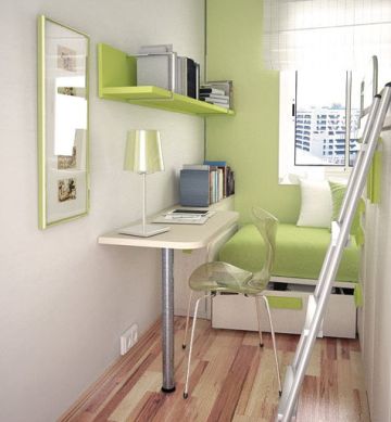 Em espaços muito pequenos você pode aproveitar a parte do chão para acomodar elementos como escrivaninha de estudo ou deixar este espaço para brincar e posicionar a cama no alto do quarto, assim você otimiza um quarto bem pequeno e sem muitas opções de montagem de móveis e elementos decorativos.