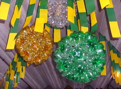 Se o seu restaurante já possui um estilo mais popular e descontraído você deve investir em decoração também com este estilo para a época da Copa do Mundo, como utilizar enfeites de teto confeccionados com material reciclado ou com papel em tons de verde e amarelo, por exemplo. Uma boa opção é utilizar as garrafas descartáveis utilizadas em seu restaurante e que possuem a cor verde em companhia com outros materiais com a cor amarela.