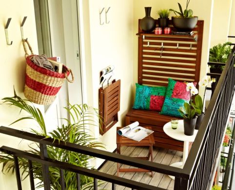 Até mesmo em espaços ínfimos como sua sacada você pode alcançar belos resultados de decoração e conforto, para isso basta escolher a peças certas. Se você quer passar um tempo neste refúgio do mundo real, invista em uma poltrona bem confortável, e caso você não possua espaço suficiente para colocar uma poltrona, coloque uma cadeira, mas tem eu ser bem confortável, para que seus momentos passados ali sejam realmente relaxantes. E por ser um espaço bem pequeno você pode deixá-lo mais interessante utilizando cores bem intensas (para alegrar todo o ambiente) e também utilizando móveis e objetos funcionais, como peças fixadas na parede que quando abertas transformam-se em mesas, e em ganchos fixados na parede para acomodar seus objetos de uso pessoal.