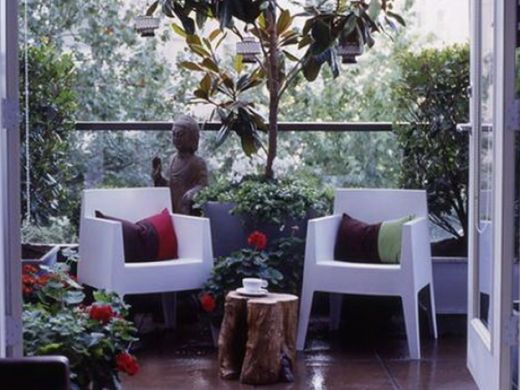 Outra opção para decorar sua sacada é transformá-la em um espaço de meditação ou um espaço religioso, e neste quesito você pode utilizar itens de qualquer religião. Deixe o clima do espaço bem interessante acrescentando várias plantas e colocando suas imagens (caso use alguma, claro) em mesinha ou monte altares fixados na parede para economizar espaço, caso sua sacada seja pequena.