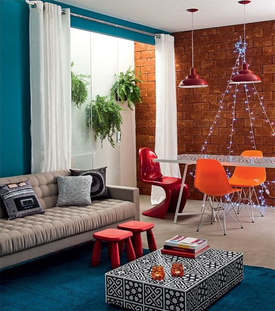 Outra maneira de delimitar os espaços de forma bem efetiva é posicionar um tapete na sala de jantar ou um tapete na sala de estar. E esta dica funciona para qualquer tipo de decoração, até mesmo para as mais descontraídas.