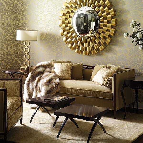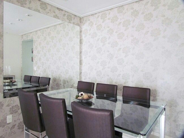 A sala com papel de parede pode ter um papel espelhado ou receber um espelho em sua parede. Este espelho pode ser de diversos tamanhos e todas as salas podem aderir a este padrão.