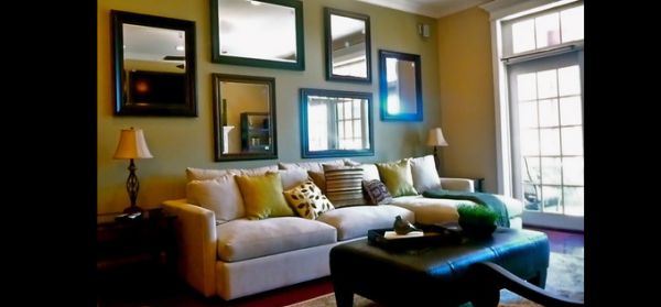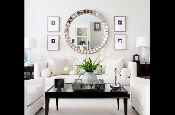 Mesmo a decoração simples de uma sala pode ter um espelho agregando mais valor ao local. A decoração de sala pequena com espelho pode, sim, ser simples e interessante ao mesmo tempo, você só precisa de um espelho, sofás e mais algumas peças com linhas retas.