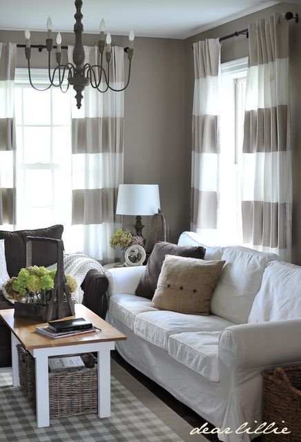 Se você quer que a sua sala pequena pareça que é maior, opte por cortinas com listras horizontais, pois estas listras vão fazer o cômodo ficar visualmente mais largo. Se você puder, coloque uma cortina que pegue toda a parede e não somente a parte da janela, para aumentar o efeito ampliador. E você também pode revestir duas paredes com cortinas, mesmo que em uma das paredes não haja janela, somente para conseguir ampliar a sua sala. E qualquer sala pode receber cortinas listradas, até mesmo a sua sala de jantar.