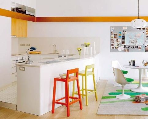 Cores também são uma constante em decorações para jovens, pois a alegria presente nas cores agrada quem tem uma vida agitada e busca sempre novidades. E para incorporar muitas cores no décor de seus ambientes há muitas opções, como acrescentar cadeiras coloridas ao balcão da cozinha americana, podendo ser até mesmo ser uma cadeira de cada cor; optar por sofás ou poltronas coloridas para as salas; ou usar objetos de decoração coloridos e manter o cômodo com tons mais claros e neutros, para quem não quer um ambiente muito chamativo no quesito cores.
