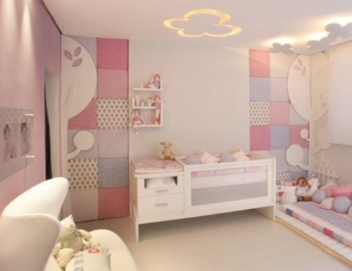 E até mesmo o quarto de sua filha ainda bebê pode receber decoração diferente. E esta diferenciação pode estar nos móveis, na combinação de peças, no mix de cores e estampas, ou ainda na iluminação utilizada no quarto, como acrescentar lustres e luminárias diferentes ou detalhes no teto para garantir efeitos inusitados.
