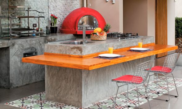 Ainda falando da área externa de sua casa, você pode decorar o balcão da pia ou da sua churrasqueira na área de lazer com azulejos também bem coloridos e alegres, para deixar os momentos passados neste espaço sejam ainda mais divertidos.