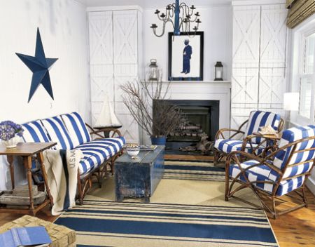 Sua sala de estar ou livings podem ficar muito mais aconchegantes com uma decoração com estilo navy, e você nem precisa acrescentar objetos do tema, apenas adotar as típicas listras, que podem ser em azul e branco, para um clima mais tranquilo e calmo, ou em vermelho e branco, se você quiser mais cor ao ambiente, ou ainda optar pelas listras em azul, vermelho e branco.