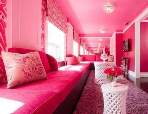 Se você mora sozinha e adora a cor rosa, você pode incorporá-las sem problemas em sua sala e de maneira bem exagerada. Paredes, teto, móveis e até o piso (como uso de tapetes também com a cor rosa) pode formar um ambiente ultrafeminino, porém se você não está com o orçamento folgado e enjoa fácil das decorações que monta, evite fazer este tipo de décor, pois como ele contém muita cor rosa e com tonalidades bem intensas, ele enjoa o morador mais facilmente do que uma decoração mais clean ou simples.