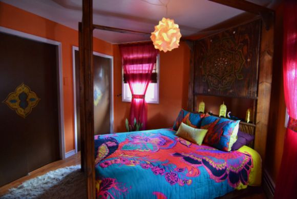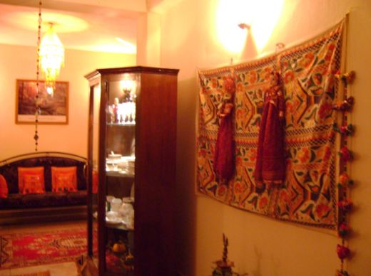 Pendurar nas paredes tapetes ou tecidos estampados é mais do que natural para os indianos, e com isso você pode repaginar totalmente a decoração de sua casa. Você pode fixar na parede da sala de estar ou de jantar um tapete oriental ou então colocar um tecido estampado na cabeceira de sua cama, ou até mesmo forrar a cabeceira já existente com este tecido.