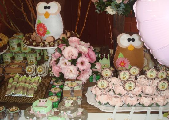 Tanto meninas quanto meninos podem aproveitar o tema coruja e decorar a sua festinha. E a coruja pode estar posicionada e ser utilizada em todos os elementos da festa, desde convites; passando pelos docinhos e lembrancinhas, até o bolo.