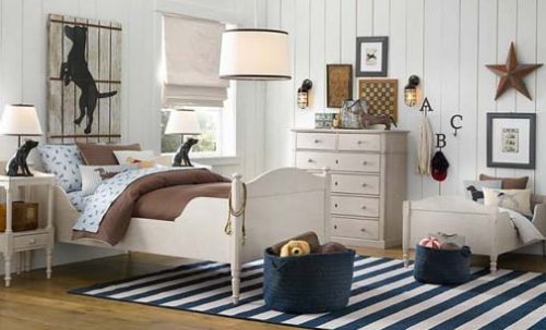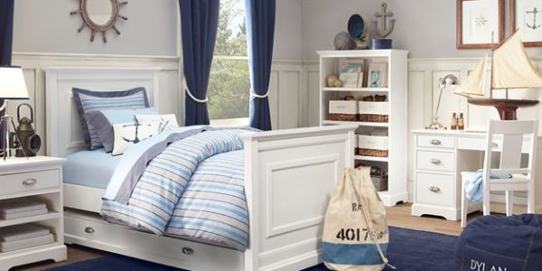 Você pode começar com simples toques do estilo navy, caso o seu filho não goste muito deste tipo de décor. Você pode acrescentar à decoração de um quarto que já possua a cor branca predominando (ou outra cor bem clara) alguns toques aqui e ali da cor azul, como em cortinas ou em tapetes (e esta cor azul também pode vir nas convencionais listras que remetem aos marinheiros) e também alguns elementos relacionados ao fundo do mar, como uma estrela do mar fixada na parede.