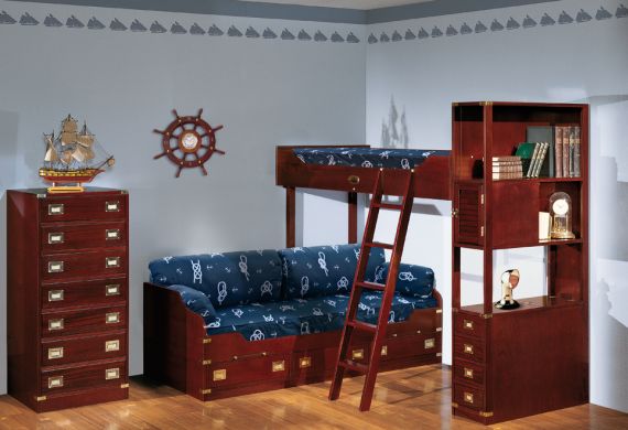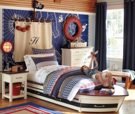 E você também pode fazer uma decoração total com o estilo navy no quarto dos seus filhos, uma decoração que possua todos os detalhes remetendo à vida praiana e à vida do mar, com as cores, elementos e estilo do décor náutico. E você pode chegar ao ponto de acomodar uma cama em formato de barco no quarto de seus filhos e usar roupa de cama com barquinhos bordados, por exemplo.