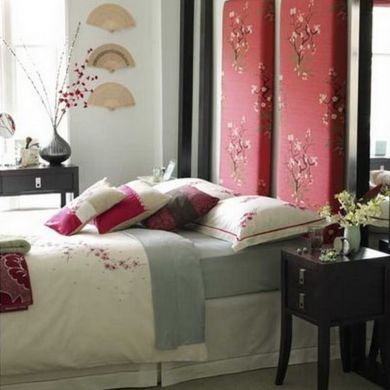 Todas as cores, formas, estampas e elementos da cultura oriental podem ser aproveitados (de um jeito ou de outro) na decoração de seu quarto, caso você não queira ostentar muito o estilo oriental, mas também não quer abrir mão de ter pelo menos um item com este estilo, pode montar painéis de cabeceira com tecidos estampados que remetam à cultura oriental. Esta é a forma mais simples e eficaz de fazer seu quarto entrar no clima do oriente.