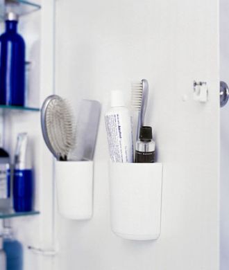 Em todas as portas de seu banheiro você pode acrescentar suportes, e dos mais variados modelos, para você poder organizar, guardar e manter seus objetos de uso pessoais, toalhas, cosméticos e até mesmo maquiagem. Escovas de cabelo, escovas de dente e toda a gama de produtos que normalmente mantemos no banheiro também podem ser acomodadas neste suporte, e tanto para garantir um bom visual para o seu banheiro quanto para facilitar o seu dia a dia já que todos os produtos estarão sempre à mão.
