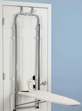 E até mesmo a sua tábua de passar roupas pode fazer parte da decoração atrás da porta. E a tábua pode apenas ser guardada nesta parte da casa, em suportes que ficam suspensos do chão ou serem fixadas na porta, com você apenas tendo que puxar a parte almofadada para passar as suas roupas, passando-as ali mesmo, atrás da porta.