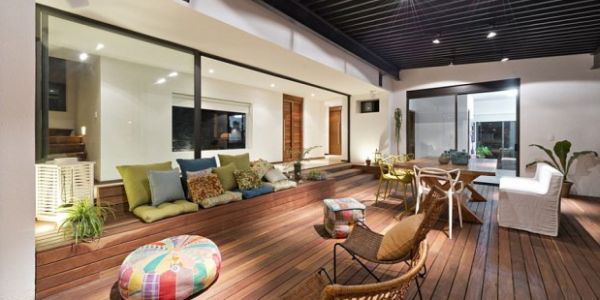 Se a sua intenção é criar um ambiente bem aconchegante e interessante na parte externa de sue lar, você pode investir em assentos revestidos com material plástico ou outro material impermeável para que quando chova suas peças não sejam prejudicadas. E acrescentar algum elemento diferenciado ao ambiente, como uma lareira mais moderna e com chama virtual, também é ótima opção.