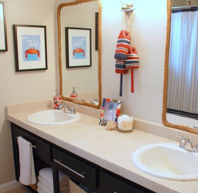 E se você não quer que o banheiro de seu filho possua decoração tão infantil ou se o seu filho divide o banheiro com algum adulto, você pode conseguir um belo décor apenas com toques decorativos infantis, como acrescentar quadrinhos singelos com bichinhos ou personagens infantis, e utilizar peças pessoais e objetos de decoração seguindo um mesmo estilo ou tema, e com cores e estampas deste estilo ou tema escolhido.