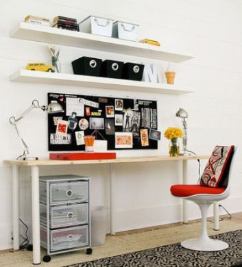 Organização é palavra de ordem em um canto de estudo, e isso independente de onde este cantinho esteja localizado, se é na biblioteca da casa, no escritório ou no próprio quarto de seu filho. Invista em muitas prateleiras, para que os livros e outros objetos não fiquem amontoados sobre a escrivaninha; em gavetões de plástico, caso a mesa para estudo não possua gavetas; e em murais, para afixação de lembretes para a entrega de trabalhos, data de provas e outros compromissos acadêmicos; além de caixinhas e porta-trecos para outros objetos.