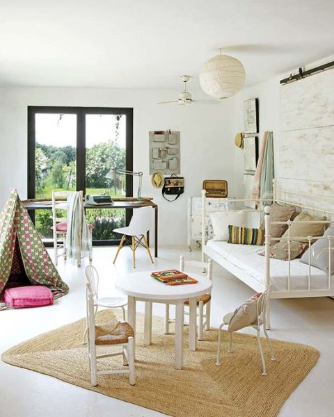 Para as crianças, invista em espaços reservados para elas em seu home office, com mesinhas e cadeirinhas pequenas, condizentes com o tamanho deles, e posicionadas perto da sua mesa, para manter o vínculo quando estiverem todos juntos relaxando. Tapetes diferenciados arrematam a decoração deste espaço.