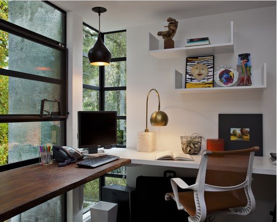 Até mesmo no final de um corredor é possível montar um espaço destinado à cultura. Fixe uma bancada ou posicione uma escrivaninha e decore este final de corredor ou cantinho recortado de seu ambiente com o estilo que você preferir, para se sentir ainda mais confortável em sua casa.