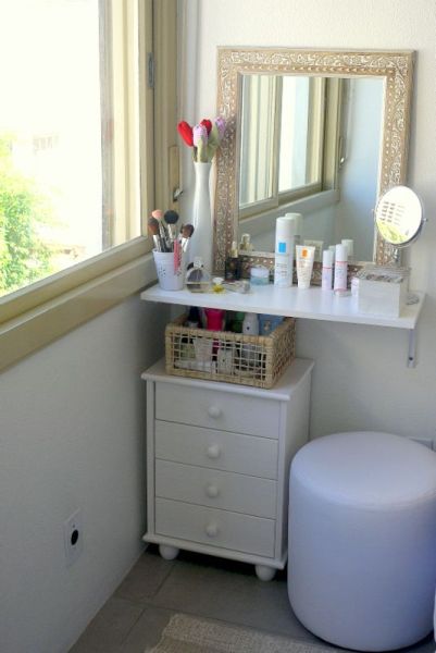 Se o seu orçamento está apertado ou se você não pode fazer reformar em sua residência por esta ser alugada e não tem como aumentar a iluminação seu espaço, monte o seu cantinho de maquiagem perto de uma janela, de uma sacada ou de uma porta que receba muita luz natural.