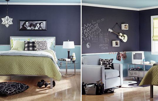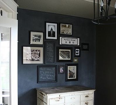 Pintar pedaços da parede e “emoldurá-los” também é ótima opção tanto para deixar recados para os outros moradores da casa quanto para diferenciar a decoração do ambiente, pois o contraste de quadros e gravuras com o espaço emoldurado somente com letras ou outros desenhos, deixará todo o ambiente com decoração muito mais interessante, mesmo que os outros objetos não possuam tanto apelo fashion.