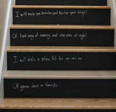 Quando dizemos que todos os cantos de sua casa pode receber tinta lousa, são todos os cantinhos mesmo. Todo espaço ou lugar sem uma função específica pode receber uma camada de tinta e ganhar novo visual, até os degraus da escada de sua casa.