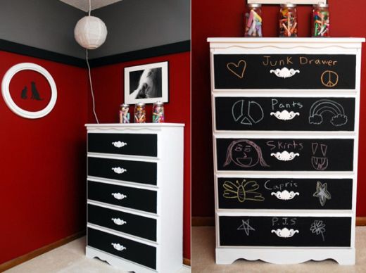 E não são somente as paredes que recebem uma camada de tinta lousa e ganham vida nova, os móveis, objetos de decoração e utensílios do dia a dia também podem receber a tinta lousa e deixar seu cotidiano muito mais divertido e diferenciado, além de muito organizado, claro.