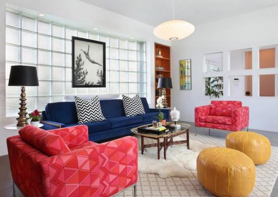 No quesito combinação de cores, você tem duas opções: você pode seguir as cores da decoração e usar pufes da mesma cor do sofá; ou pode brincar com as cores, utilizando um sofá de uma cor e pufes com cores próximas ou totalmente contrastantes.