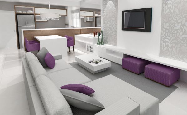 A decoração para sala de estar junto com a cozinha deve integrar ainda mais os ambientes, mas de forma harmoniosa e suave (Foto: Divulgação)