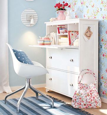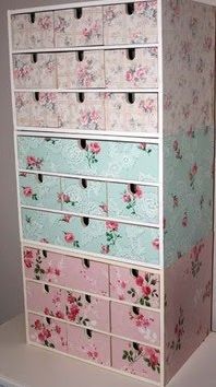 Móveis com estampas delicadas e românticas fazem com que relaxemos, além de deixar todo o ambiente muito mais charmoso e feminino. E se você for prendada pode você mesma revestir seu arquivo ou armário com adesivo específico para esta finalidade ou revestir a peça com papel contact estampado.