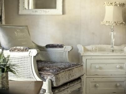 Os móveis e objetos de decoração com estilo provençal surgiram no sul da França, na cidade de Provença, e são caracterizados principalmente pela delicadeza; a elegância e cores suaves como branco, rosa, azul e verde-claro são muito vistos. E a aparência envelhecida e arranhada dos móveis, deixando aparecer a madeira natural, era originalmente causada pelo transporte dos móveis e objetos em viagens, pois os nobres daquela época possuíam mais de uma casa (usadas de acordo com a estação do ano), porém eles possuíam somente uma mobília e por isso a necessidade de levá-la de uma casa para outra. E com o passar do tempo os menos favorecidos financeiramente começaram a imitar essas pinturas como se fosse um estilo, o que acabou se tornando de fato.