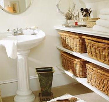 Cestaria também é ótima opção para trazer o clima mais rústico para a sua casa e ainda de quebra garantir maior espaço útil para você guardar seus objetos de uso pessoal, produtos de higiene e beleza ou suas toalhas.