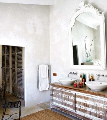 Para garantir apenas um toque de rusticidade em seu banheiro você pode aderir a um espelho com moldura de madeira com visual mais desgastado, por exemplo, ou acrescentar outros objetos com visual ou confecção com estilo mais rústico.