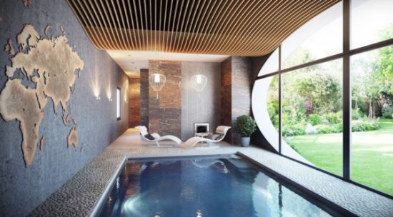 E se a sua piscina ficar posicionada na parte interna de seu lar você pode investir ainda mais em peças e móveis sofisticados, já que estas peças não sofrerão as agressões externas, como chuvas e raios solares. E quando a piscina está dentro de casa você pode apostar em poltronas confortáveis posicionados ao redor de sua piscina em vez de espreguiçadeiras mais rústicas. E invista também em muitas plantas ao redor de sua piscina, assim como mesas e cadeiras sofisticadas para você degustar as suas refeições.