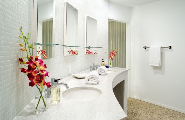 E vasinhos de plantas também são ótimas opções para decorar e valorizar as paredes totalmente brancas dos banheiros (ambientes normalmente brancos). E mesmo que a parede de seu banheiro já possua outro elemento, como espelho, você pode também acrescentar vasinhos com plantas ou flores (e estas flores podem ser bem coloridas, para animar ainda mais este espaço).