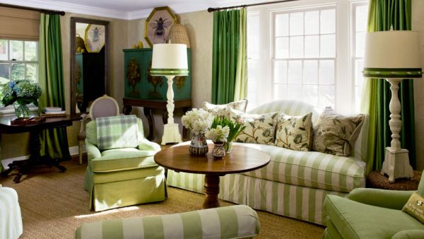 Você pode incorporar a cor verde em qualquer elemento de decoração, qualquer um mesmo, desde objetos de decoração, passando por móveis, até a pintura de paredes, teto e piso. E a maneira mais fácil de incorporar alguma cor em seu espaço, seja essa cor qualquer que seja, é utilizá-la em cortinas, almofadas ou tapetes.