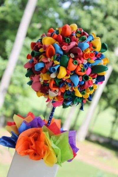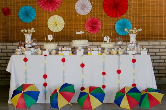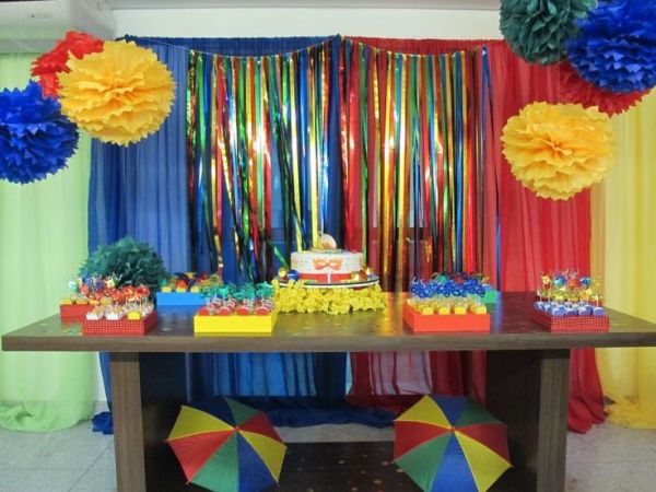 Os confetes e serpentinas são elementos presentes durante o carnaval e não poderiam ficar de fora da decoração de sua festa. E para inovar ainda mais no décor, pendure serpentinas no teto do salão onde a festa será realizada, com o auxílio de pedaços de fita adesiva transparente e coloque dentro de balões transparentes um pouco de serpentina bem colorida.
