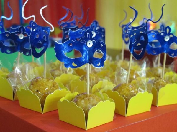 Fornecer máscaras, maquiagem e adereços de carnaval durante a sua festa também é ótima pedida para animar a comemoração. E deixe um espaço para as danças e as brincadeiras em uma parte do salão.