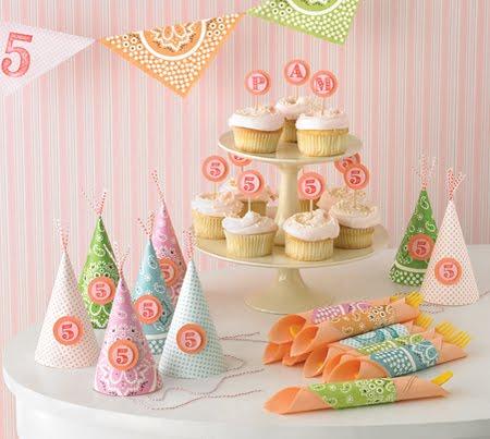 Para economizar, faça você mesmo o chapeuzinho de aniversário. Corte um circulo ao meio e enrole como na imagem acima. (Leia também sobre Decoração marrom e rosa para festa infantil .)