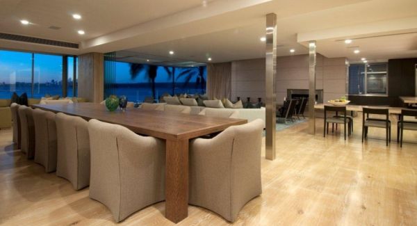 E outra peça muito importante para deixar o seu ambiente grande com o visual mais harmônico é a mesinha de centro também bem grande. E você também pode abusar das cores mais escuras em seus ambientes grandes, pois elas tendem a diminuir visualmente um cômodo.