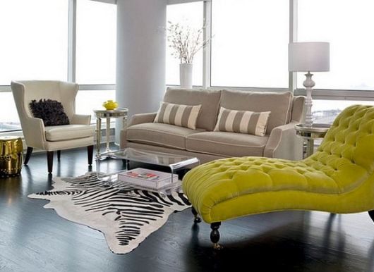 Seguindo algumas regrinhas básicas e decoração você alcança belos resultados em seu cômodo grande, e o melhor, sem gastar demais. Utilizar uma chaise, por exemplo, pode ser um ótimo recurso para diferenciar o seu espaço e ainda criar ilusão de ambiente menor e com tamanho harmônico, já que esta peça é mais comprida do que uma poltrona comum.