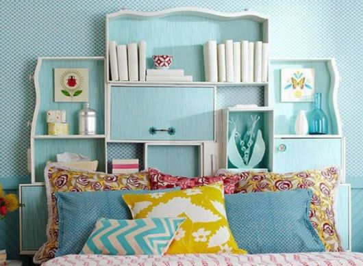 E até mesmo para montar uma bela cabeceira para a sua cama você poderá utilizar gavetas. Basta você posicionar todas as gavetas que você possuir de forma que crie um formato bem diferente e interessante. Se você quiser pode até mesmo pintar a parte interna e externa das gavetas.