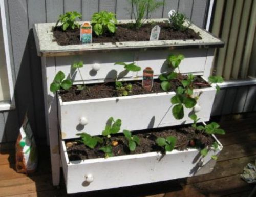A área externa de sua casa pode ficar muito mais charmosa e diferenciada se você incorporar ao jardim ou a um cantinho esquecido algumas gavetas que sirvam como vasos de plantas. E estas gavetas podem estar “soltas” ou no suporte da cômoda que elas vieram.
