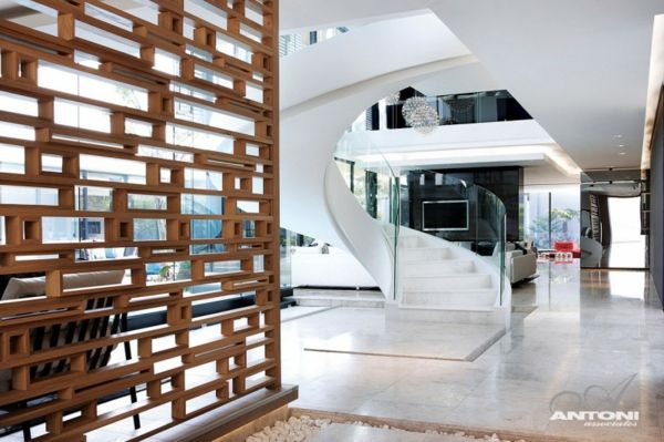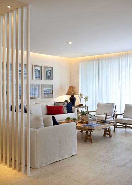 As divisórias em madeira podem possuir modelos simples, apenas com ripas posicionadas de forma vertical entre os seus ambientes, para que decorem e separem os espaços, mas de forma bem interessante e clean, mas muito bonita.